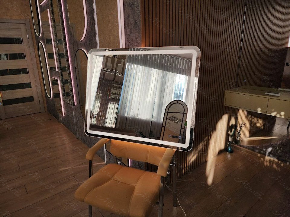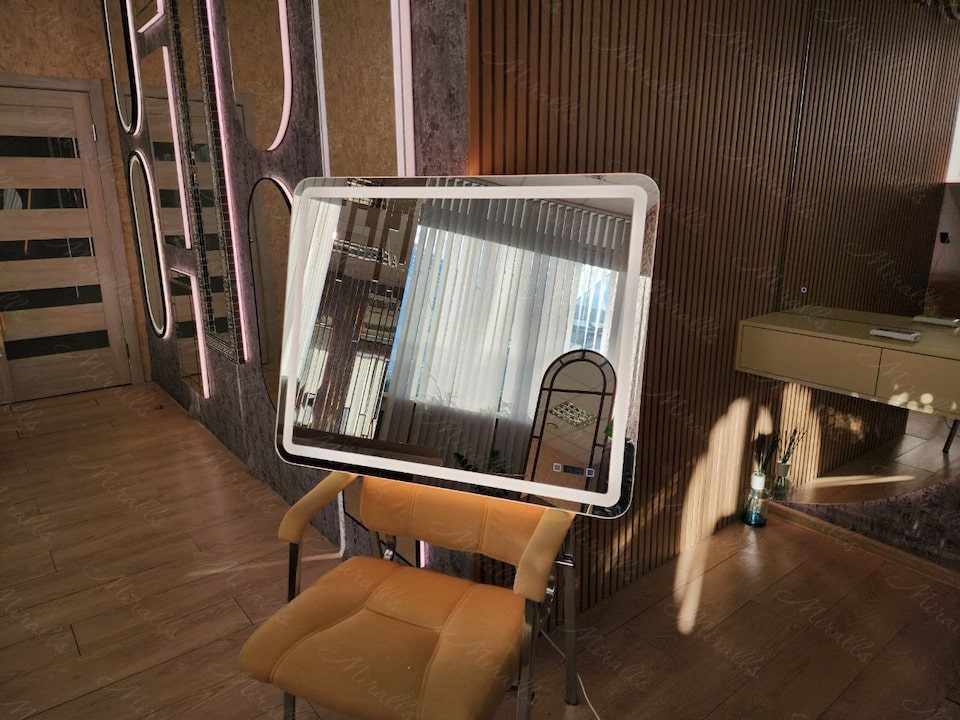 Camelia – это самое популярное из наших зеркал прямоугольной формы с закруглёнными углами. Эта модель обладает одновременно и боковой, и передней подсветкой. По периметру изделия проходит тонкий зеркальный отступ, который визуально подчёркивает красоту зеркала.