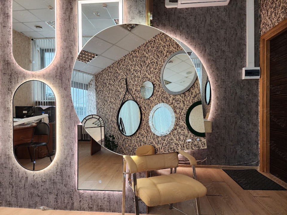 Единственное в своём роде зеркало “Drop” (Капля) напоминает дождевую каплю, подсвеченную солнечными лучами. Это зеркало необычной формы мы создали специально для дизайна ванных комнат.
