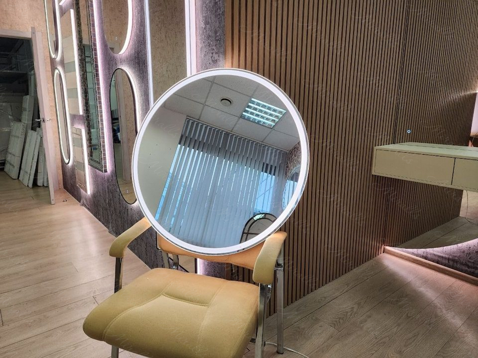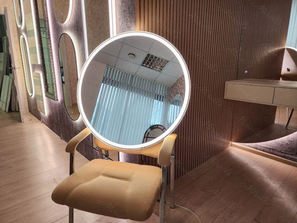 Ring – это самое популярное круглое зеркало, производимое нами уже много лет. Всё дело в его классическом дизайне и наличии одновременно и боковой, и фронтальной подсветки, которая выполнена в виде широкой линии по периметру полотна.
